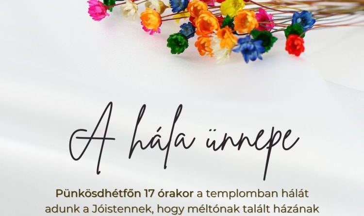 Olvass továbbHálaadás ünnepe lesz Pünkösdhétfőn 17 órától, hogy kalákában, közös összefogással újrafedhettük templomunkat. Ez az ünnep kiváló alkalom arra, hogy közösen